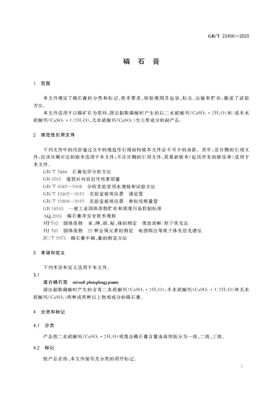 【最新国标】GB/T 23456—2025《磷石膏》国家标准正式发布